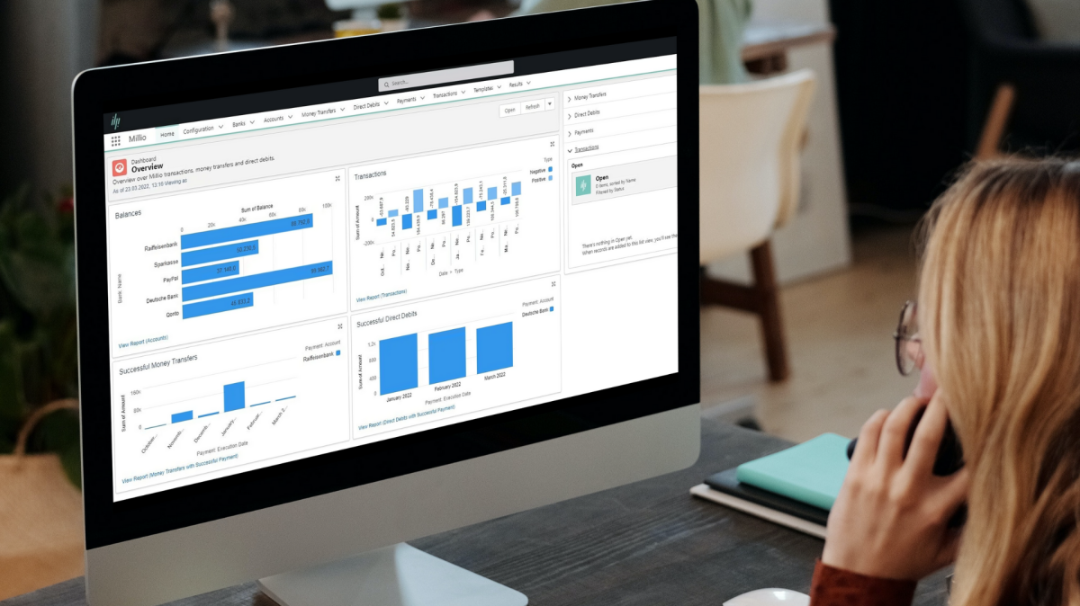 millio ist die erste Salesforce-native Onlinebanking App für dein Unternehmen. Intuitiv. Effizient. Und sicher. Mit millio kannst du dein gesamtes Business Banking ganz unkompliziert in deine Salesforce-Org integrieren, um all deine Geschäftskonten im Blick zu behalten und gängige Bankingprozesse direkt in deinem CRM-System zu organisieren, um nachhaltig bessere Finanzentscheidungen für dein Unternehmen treffen zu können.
