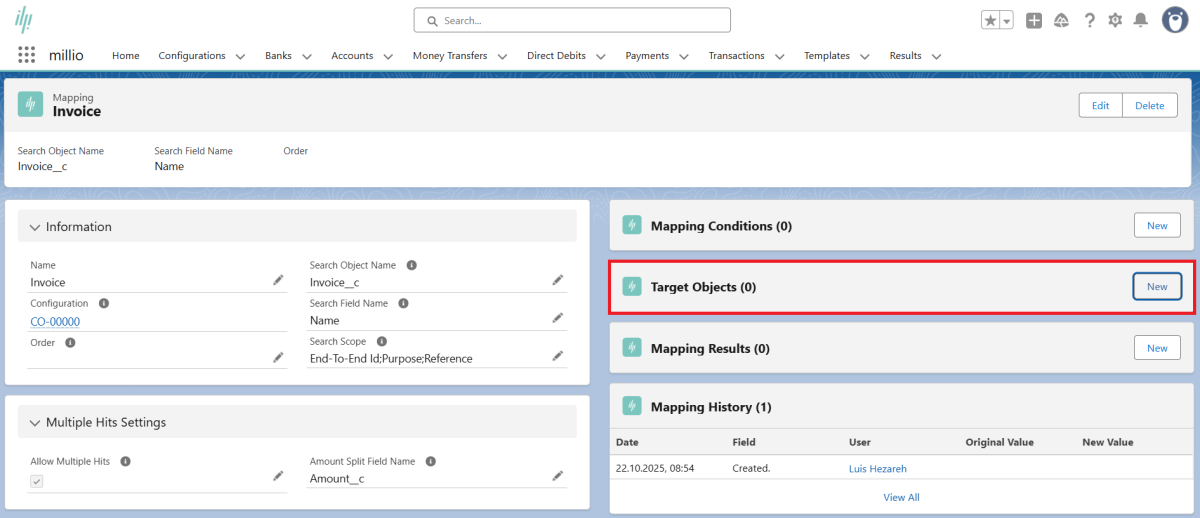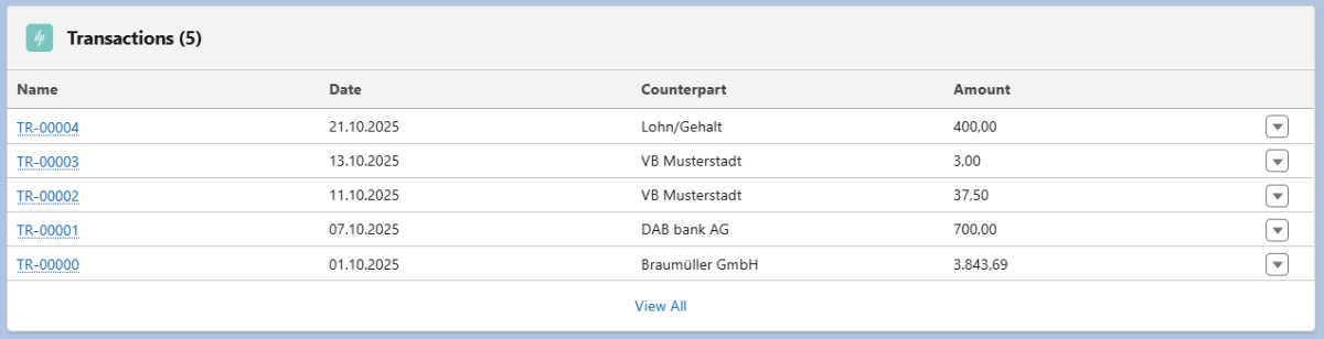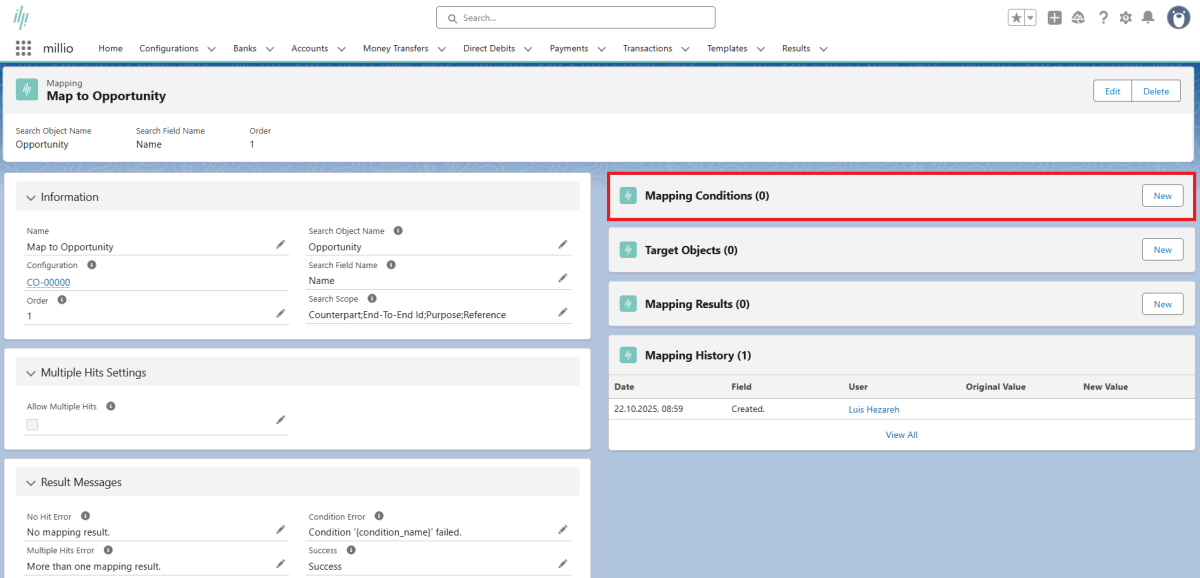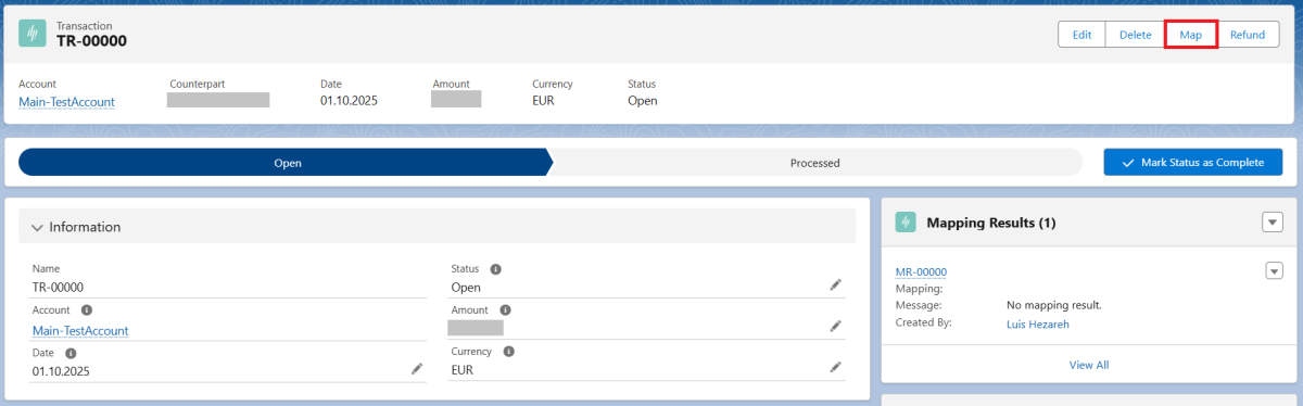 Errors in the assignment of incoming account transactions to Salesforce data records are displayed in a "Mapping Result" object provided for this purpose at the transaction level. If an incoming account transaction cannot be mapped, the respective cause can be determined here.